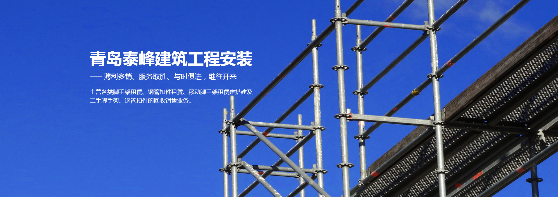 青島泰峰建筑工程安裝有限公司主營(yíng)各類腳手架租賃、鋼管扣件租賃、移動(dòng)腳手架租賃建搭建及二手腳手架、鋼管扣件的回收銷售業(yè)務(wù)。公司實(shí)力雄厚,擁有鋼管約3000噸、扣件70萬(wàn)只、鋼笆7萬(wàn)多片塔吊、人貨電梯多臺(tái);總資產(chǎn)達(dá)到1000多萬(wàn)元。是一家具有腳手架搭建、水電安裝專業(yè)承包施工資質(zhì)的企業(yè),并成為青島市五金協(xié)會(huì)的會(huì)員單位。且多次參與高層建筑、建筑裝修、玻璃幕墻、橋梁、隧道、地鐵、電廠維修施工、造船等行業(yè)的施工,并獲得施工單位的一致好評(píng)。 人無(wú)信不立,有信則強(qiáng)公司以“薄利多銷、服務(wù)取勝”為經(jīng)營(yíng)宗旨...
